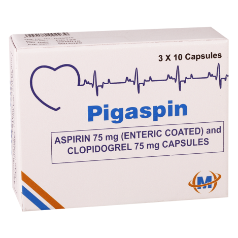 მწვავე კორონარული სინდრომი – მკურნალობა უნდა დაიწყოს კლოპიდოგრელის და ასპირინის 300მგ ერთჯერადი დარტყმითი დოზით, ხანგრძლივი დროით ყოველდღიური მკურნალობა უნდა გაგრძელდეს პიგასპინის ერთი კაფსულით (75მგ/75მგ) დღეში ერთხელ.